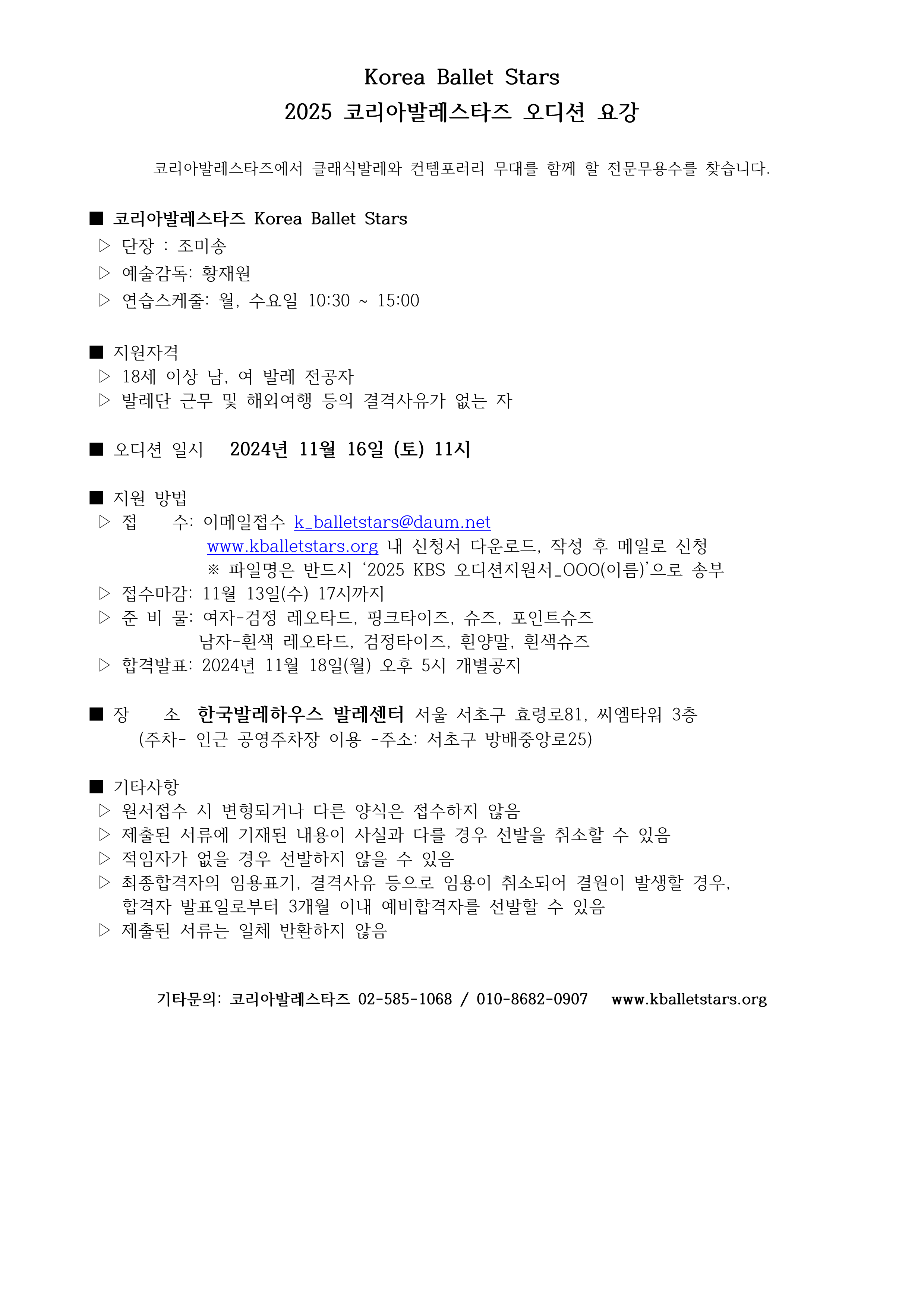 [오디션 공고] 2025 코리아발레스타즈 신입단원 오디션 공고